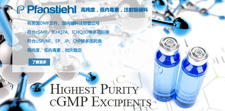 “熱烈祝賀Pfanstiehl的注射級甘氨酸Glycine(G-140)喜獲CDE登記號F20250000403, 這是Pfanstiehl產品獲得的第18個CDE登記號!”甘氨酸在醫藥輔料制劑中應用廣泛,, 可作為緩沖劑,增溶劑,穩定劑等,具有諸多優勢。Pfanstiehl秉承一貫高品質理念,為滿足全球生物制藥行業對于高品質甘氨酸的需求,隆重推出的注射級甘氨酸Glycine (G-140), 具有超高純度,超低內毒素,超低金屬殘留的特點,單獨檢測29種金屬離子,并且新增DNA,RNA,DNA酶,RNA酶和脂肪酶,亞硝酸鹽等多項質量指標的檢測,符合多國藥典規定(USP, EP, BP, JPE, ChP),可用于生物治療性藥物和疫苗的生產。產品信息:· 產品名稱:Glycine, High Purity, Low Endotoxin, Low Metals, USP, EP, BP, JPE, ChP (G-140)· 中文名稱:甘氨酸· 分子式:C2H5NO2· 分子量:75.07 g / mol· CAS號:56-40-6· 產品貨號:G-140產品特點: · 超高純度,超低內毒素,超低微生物含量,超低金屬雜質殘留· 質量指標新增DNA,RNA,DNA酶,RNA酶,脂肪酶和亞硝酸鹽檢測· 符合多國藥典:USP, EP, BP, JPE, ChP· 符合ICH Q3D標準· 符合GMP標準· 已獲DMF和CDE登記號 產品應用:· 緩沖劑· 穩定劑· 增溶劑如果您對Pfanstiehl注射級別Glycine G-140感興趣,歡迎聯系Pfanstiehl 中國區代理商北京西美杰科技有限公司獲得如下詳細的產品概況說明文件和測試樣品。Pfanstiehl Inc.最新產品系列如下,歡迎聯系北京西美杰科技有限公司獲取100g裝免費樣品。北京西美杰科技有限公司為Pfanstiehl中國代理,為客戶提供完善的技術支持與售后服務。歡迎撥打西美杰客服電話400-050-4006或者登陸網站www_xmjsci_com.166bd.com了解更多信息。 更多>